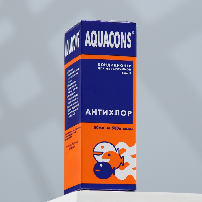 Безопасная вода — с первого дня в аквариуме! Антихлор «Акваконс» (50 мл) — кондиционер для быстрой нейтрализации хлора и тяжёлых металлов в водопроводной воде. Подходит для всех видов пресноводных аквариумов: от нано-ёмкостей до крупных систем. Работает при температуре воды от +1 до +30 °C — в любое время года и в любых условиях.