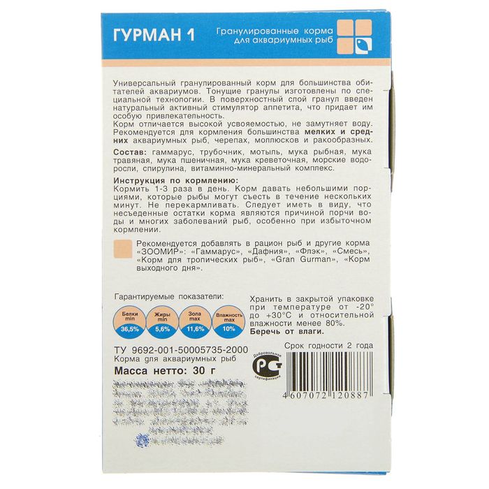 Корм для рыб ЗООМИР «Гурман-1» деликатес 1 мм, коробка, 30 г