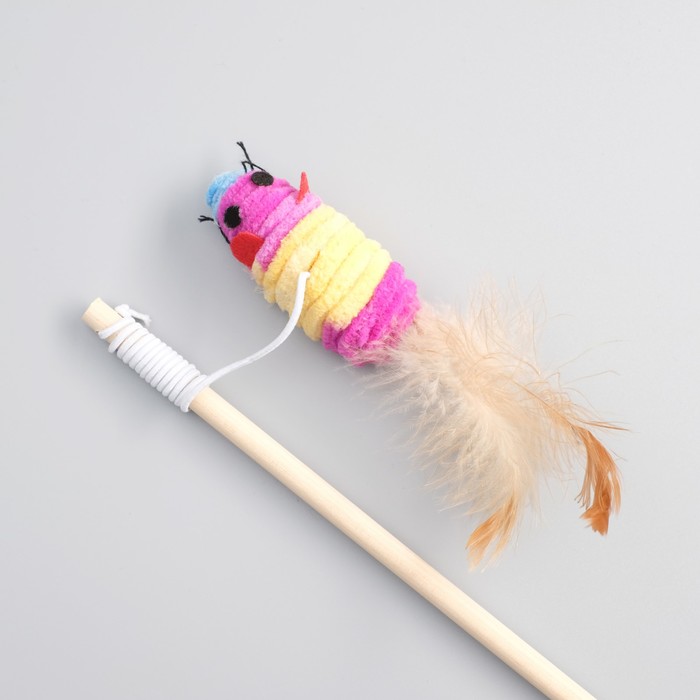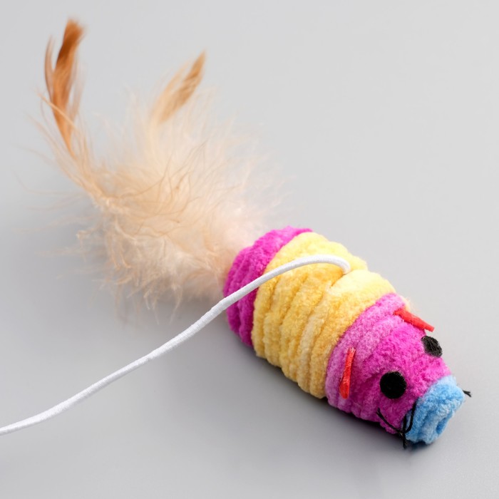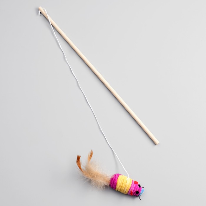Дразнилка с махровой мышкой (7 см) на деревянной палочке, 40 см, микс цветов