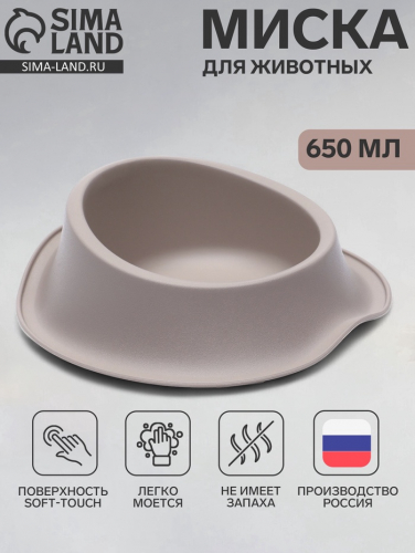 Миска, в которой еда выглядит лучше, а питомец — довольнее! Практичная миска с наклоном и объёмом 650 мл — это удобное решение для кошек и собак. Подходит как для сухого корма, так и для воды. Простая, но логичная форма делает её частью повседневного ухода за животным без лишней декоративности.