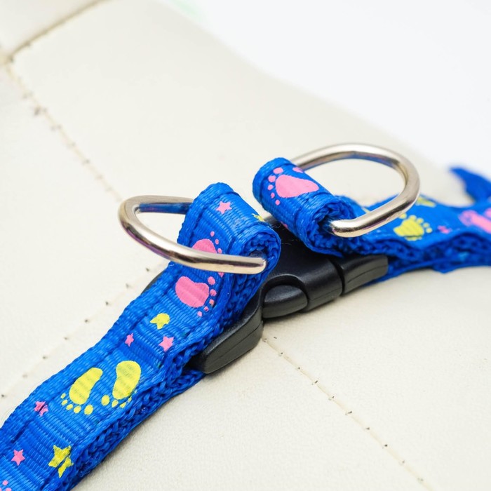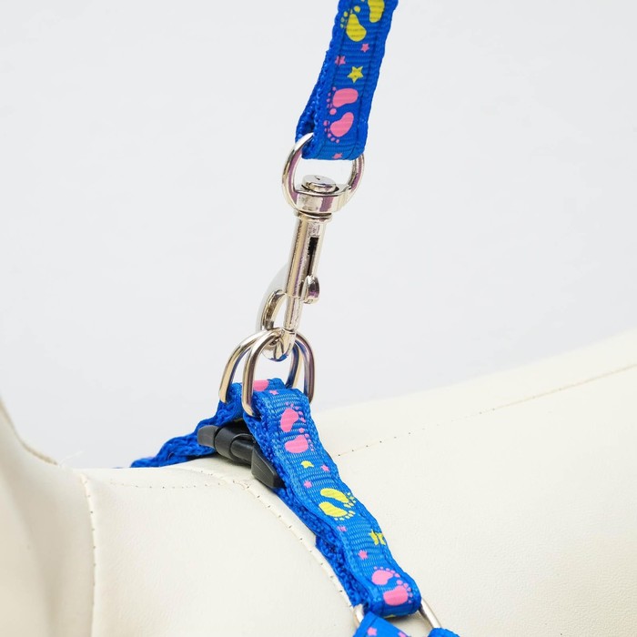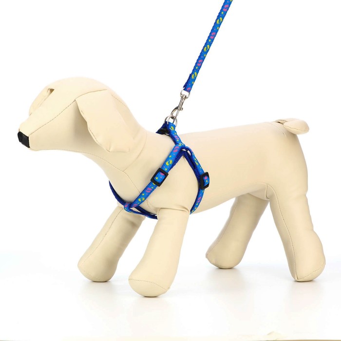 Комплект «Цветные следы», ширина 1 см, поводок 120 см, шлейка 23-35 см, синий