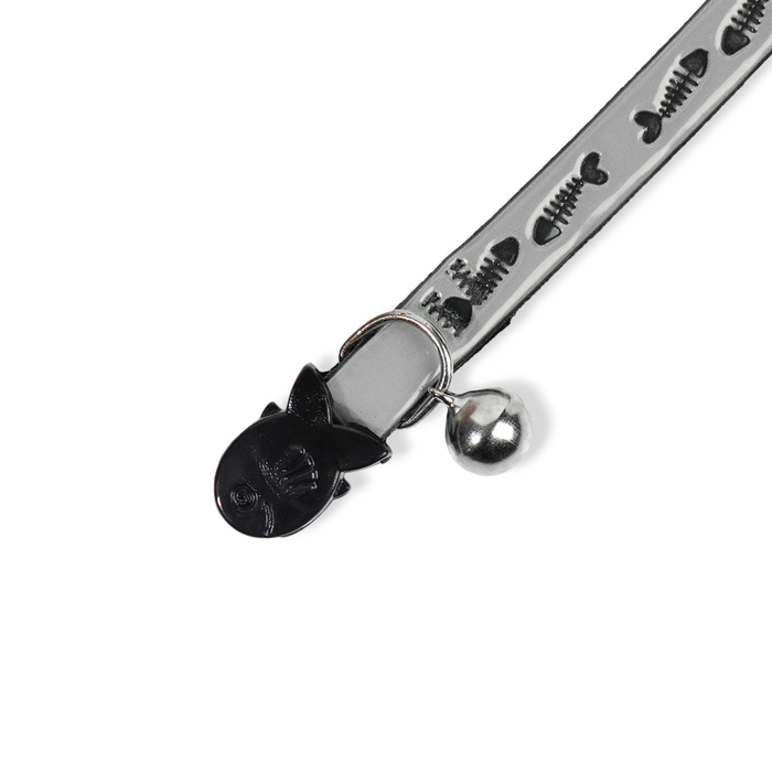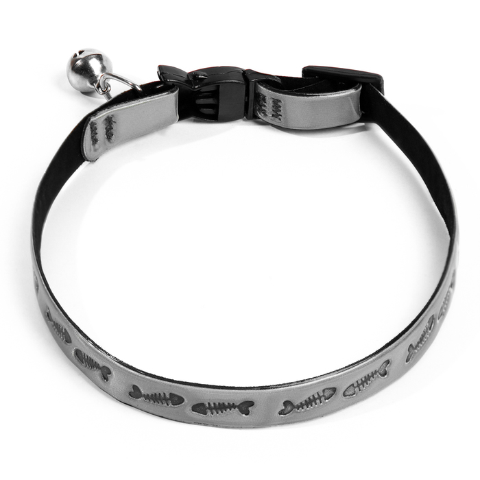 Ошейник кошачий «Рыбки», со светоотражающим покрытием, 30×1 см, серебристый