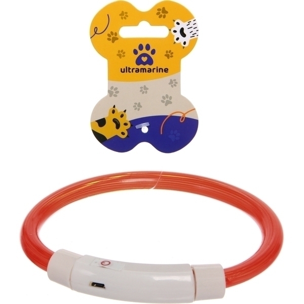 Ошейник неоновый для собак малых пород "Защита Бро", цвет красный, зарядка от USB, шнур в комплекте, размер S - d 35см (пакет с подвесом)