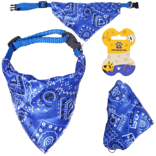 Ошейник с банданой для собак и кошек - это стильный аксессуар для Вашего любимца. Аксессуар легко регулируется и не заминает шерсть животных. Ошейник изготовлен из плотной нейлоновой стропы и имеет быструю пластиковую застежку. Поводок крепится к ошейнику на стальное полукольцо. Бандана летняя легко снимается. При желании ее можно продеть на другой ошейник аналогичной ширины. Платок для собак не токсичен, не выцветает. Дышащая и легкая ткань у ошейника может поддерживать прохладу домашних животных даже в жаркую погоду. Бандану можно стирать в стиральной машине при температуре 30 градусов. Вид ошейника декоративный. Идеален для фотосессий!