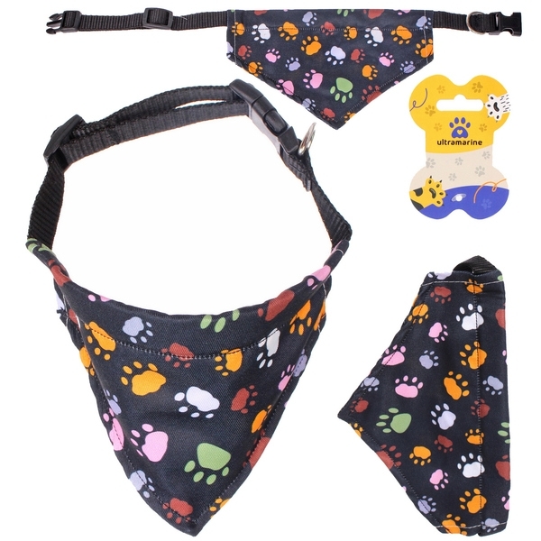 Ошейник с банданой для собак и кошек - это стильный аксессуар для Вашего любимца. Аксессуар легко регулируется и не заминает шерсть животных. Ошейник изготовлен из плотной нейлоновой стропы и имеет быструю пластиковую застежку. Поводок крепится к ошейнику на стальное полукольцо. Бандана летняя легко снимается. При желании ее можно продеть на другой ошейник аналогичной ширины. Платок для собак не токсичен, не выцветает. Дышащая и легкая ткань у ошейника может поддерживать прохладу домашних животных даже в жаркую погоду. Бандану можно стирать в стиральной машине при температуре 30 градусов. Вид ошейника декоративный. Идеален для фотосессий!
