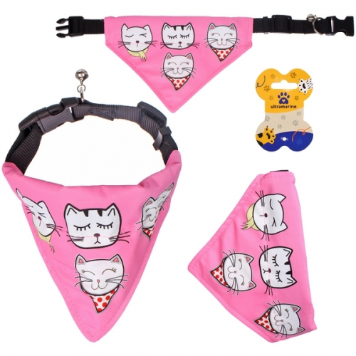 Ошейник с банданой для собак и кошек - это стильный аксессуар для Вашего любимца. Аксессуар легко регулируется и не заминает шерсть животных. Ошейник изготовлен из плотной нейлоновой стропы и имеет быструю пластиковую застежку. Поводок крепится к ошейнику на стальное полукольцо. Бандана летняя легко снимается. При желании ее можно продеть на другой ошейник аналогичной ширины. Платок для собак не токсичен, не выцветает. Дышащая и легкая ткань у ошейника может поддерживать прохладу домашних животных даже в жаркую погоду. Бандану можно стирать в стиральной машине при температуре 30 градусов. Вид ошейника декоративный. Идеален для фотосессий!