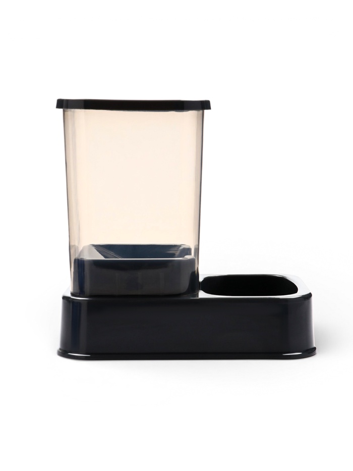 Автокормушка на 1,5 л выполнена в строгом чёрном цвете и оснащена нескользящим основанием. Подходит для кошек и мелких собак, обеспечивая стабильный доступ к сухому корму на 2–4 дня.