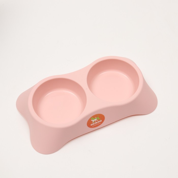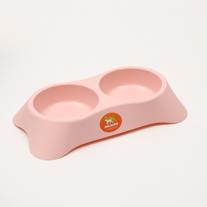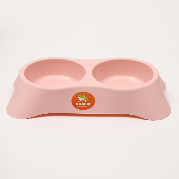 Миска двойная, 2×250 мл, 28×16×5 см, пластик, розовая