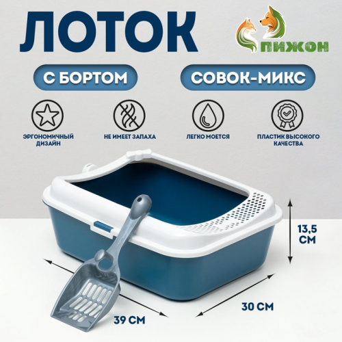 Туалет для кошек «Киса», 37×27×4 см, с сеткой, пластик, синий