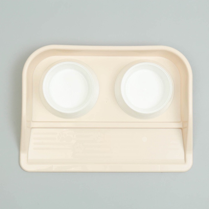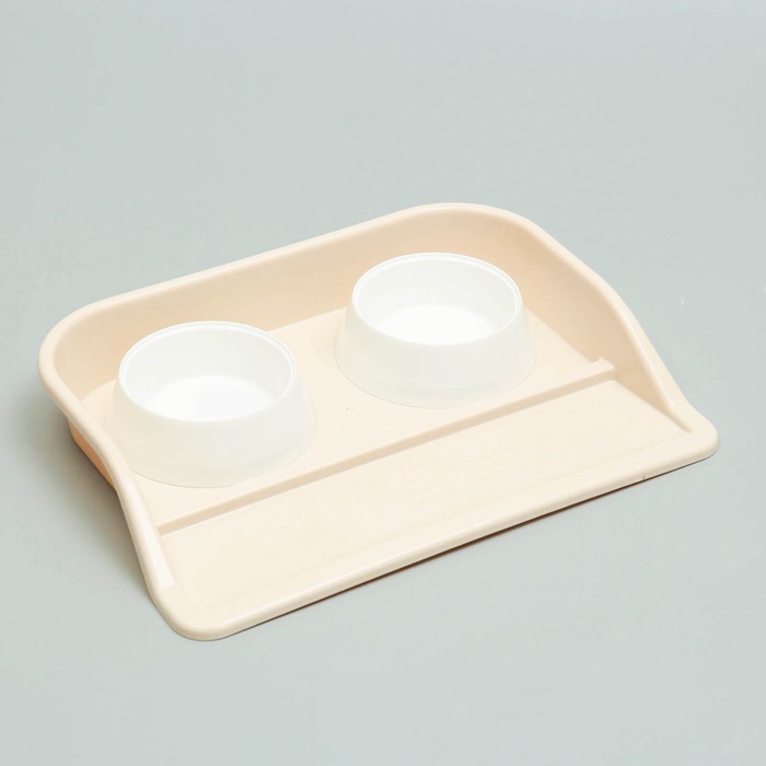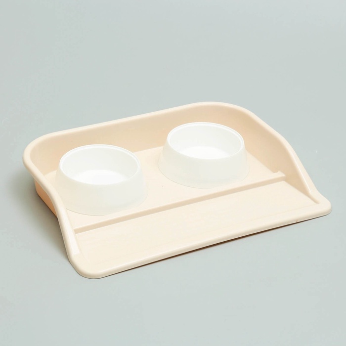 Миски с лотком «Феликс», 300 мл, 41×30×6 см, пластик, бежевый лоток, белые миски