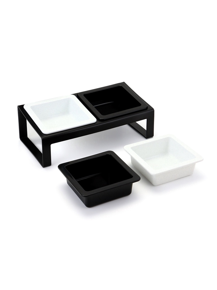 Миски с подставкой КВАРТЕТ пластиковые двойные (+ 2 миски в подарок), 2×0.38 л