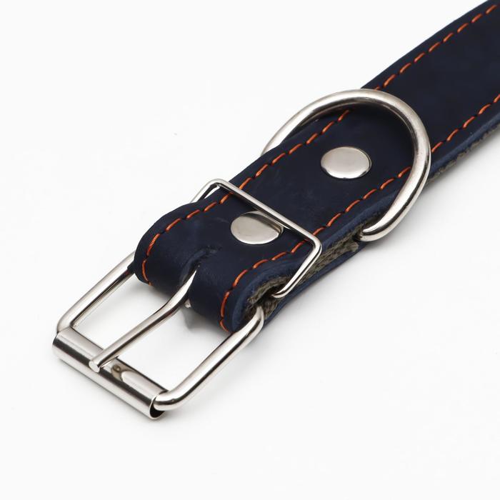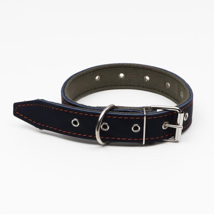 Ошейник комбинированный кожа/брезент, безразмерный, 70×3.5 см, ОШ 25-60 см, синий