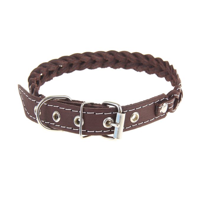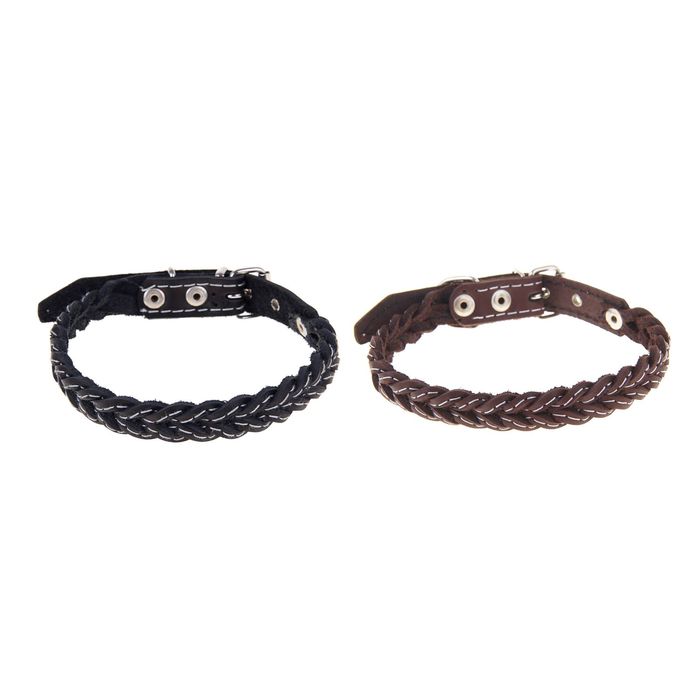 Ошейник кожаный плетеный, 42×2 см, ОШ 35-45 см, микс цветов