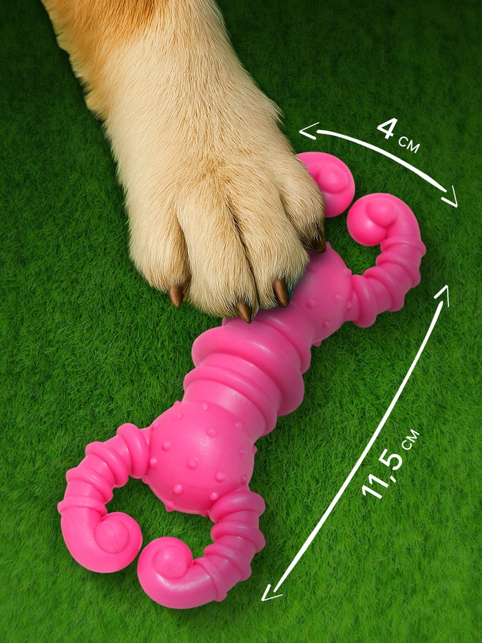 Игрушка для собак резиновая "Гантель-крабы", TPR, 11.5×2 см, розовая