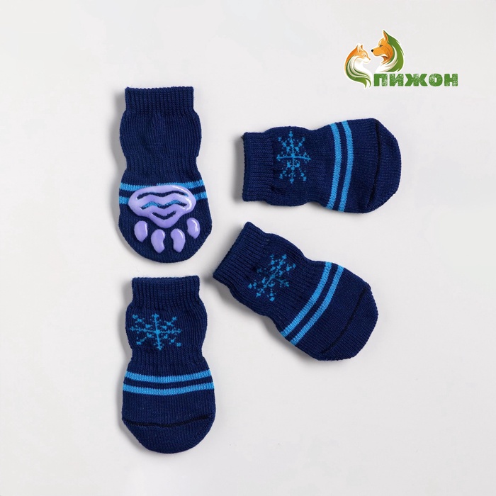 Носки нескользящие «Снежинка», размер S (2.5/3.5×6 см), набор 4 шт., тёмно-синие