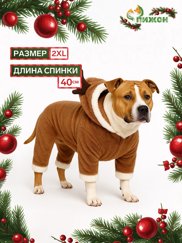 Новогодний костюм для животных «Олень», XXL (ДС 40, ОГ 52 см), коричневый