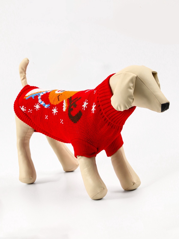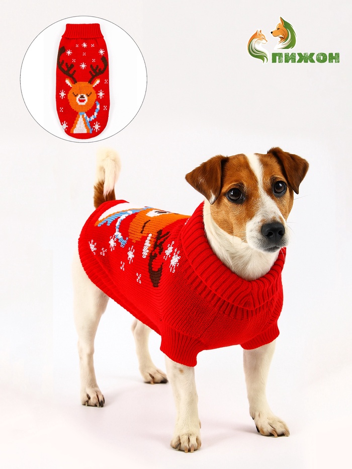 Свитер «Олень на красном», XL (ДС 34, ОШ 34, ОГ 32-51 см)
