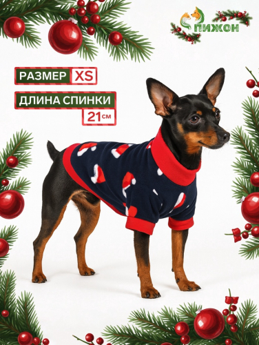 Толстовка для собак «Новогодний колпак», размер L, синяя (ДС 38, ОШ 34, ОГ 48 см)