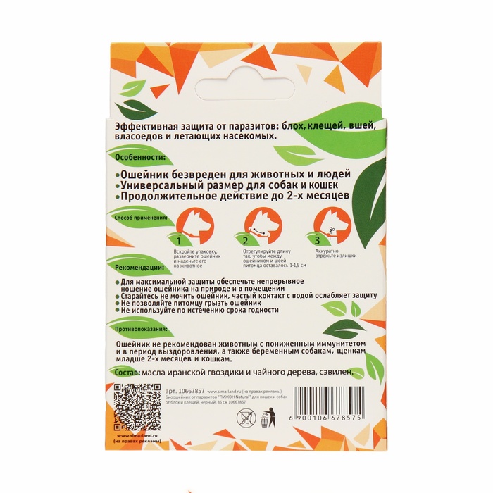 Биоошейник от паразитов"ПИЖОН Natural" для мелких собак,кошек от блох и клещей,черный,35 см,