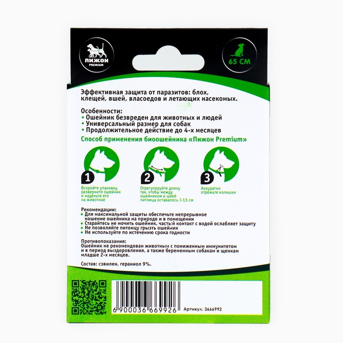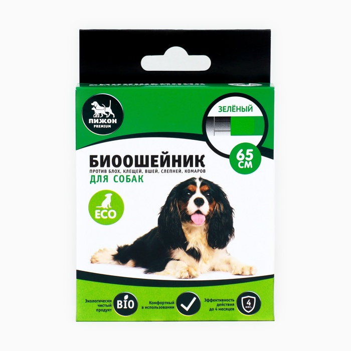Биоошейник от паразитов "Пижон Premium" для собак, зелёный, 65 см