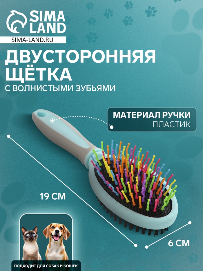 Двусторонняя щётка - расческа с волнистыми зубьями, средняя, 6 х 19 см, мятная