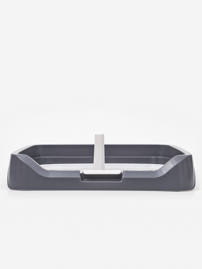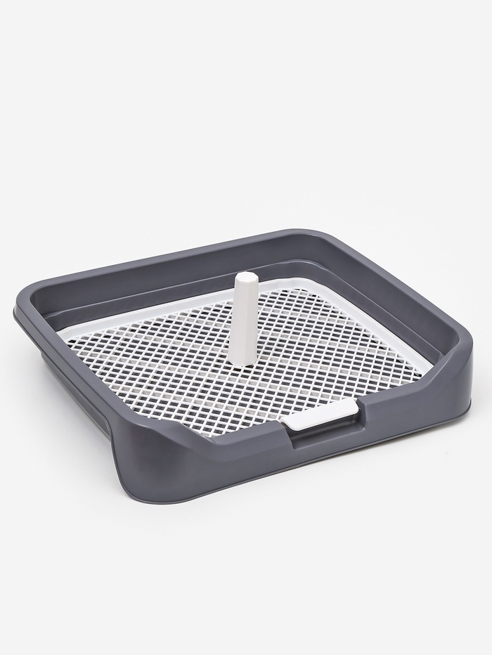* Съёмная решётка: пластиковая сетка удерживает лапы над наполнителем или впитывающей пелёнкой. Её можно легко снять для чистки — никаких брызг и разносимой грязи по дому.