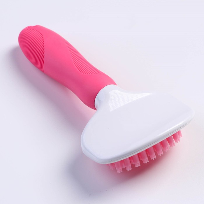 Щётка шерсти с удлиненными силиконовыми зубцами и массажным эффектом, 8 х 17, розовая
