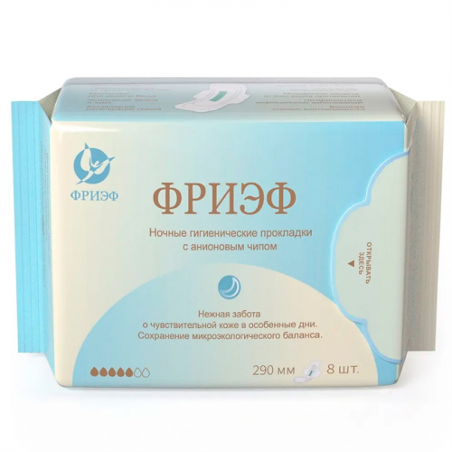 Ночные гигиенические прокладки с анионовым чипом. Фриэф, 290 мм, 8 шт