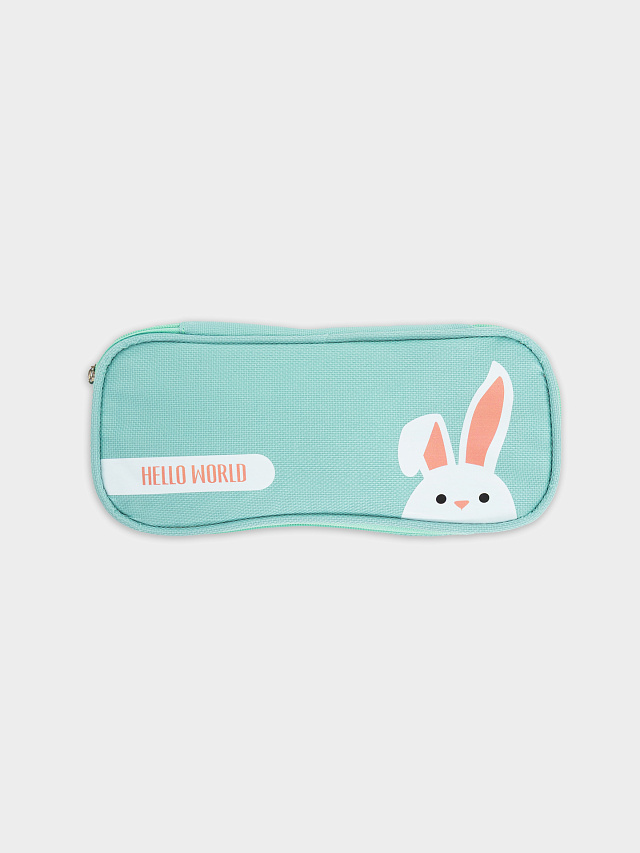 Футляр-пенал школьный бирюзовый с зайчиком