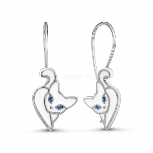 Серьги детские из серебра с эмалью родированные - Кошки 925 пробы 5061эр2