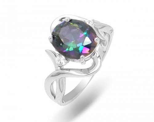 Кольцо из серебра мистик кварц, МЦВ010мк
