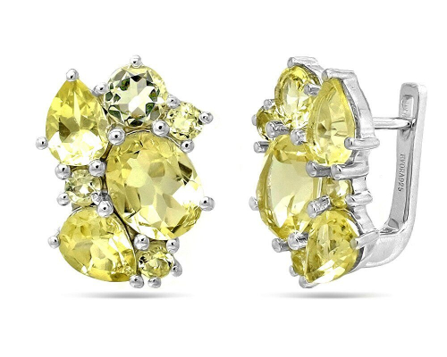 Серьги из серебра лимонный топаз, рутиловый кварц золотой, Лунетта