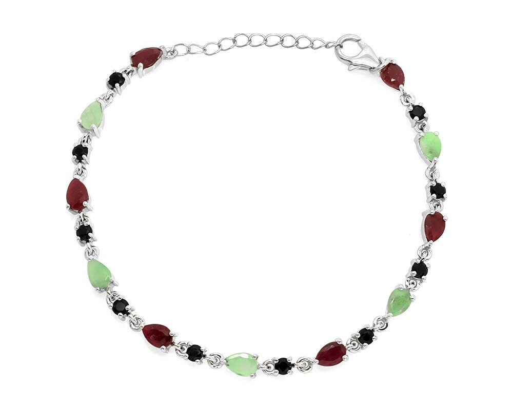 Браслет из серебра изумруд берилл, рубин корунд, сапфир корунд, Орхис
