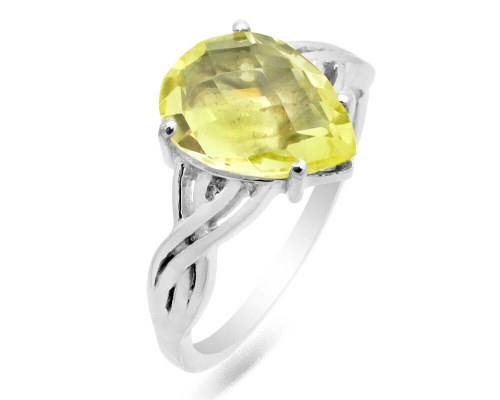 Кольцо из серебра лимонный топаз, Капля