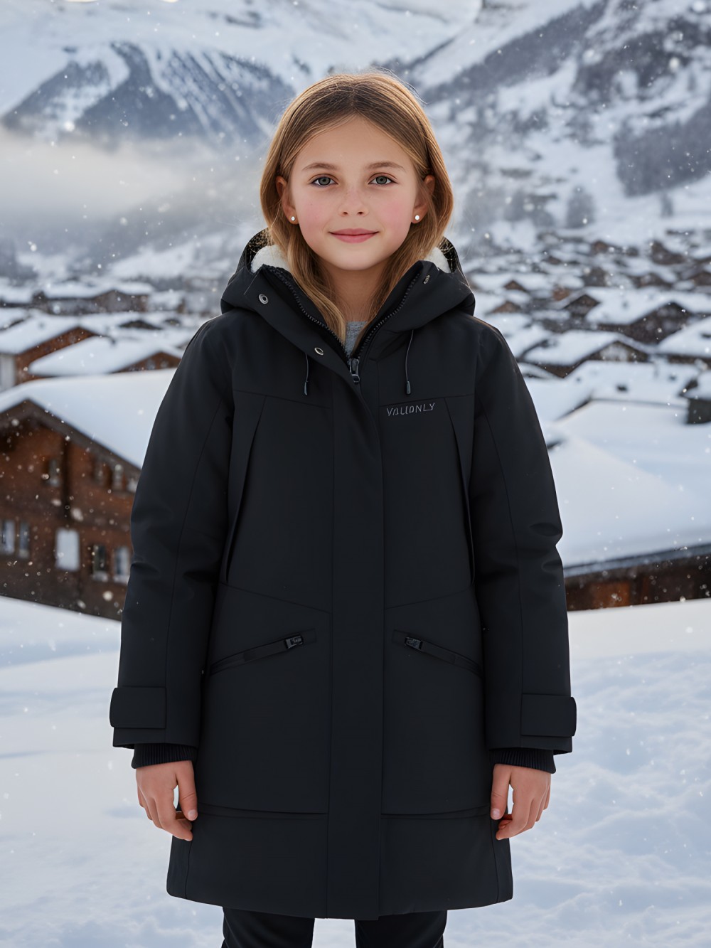 Парка зимняя подростковая для девочки с капюшоном черного цвета 9538Ch
