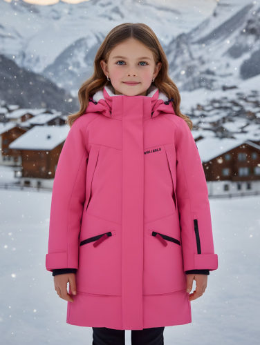 Парка зимняя подростковая для девочки с капюшоном розового цвета 9538R
