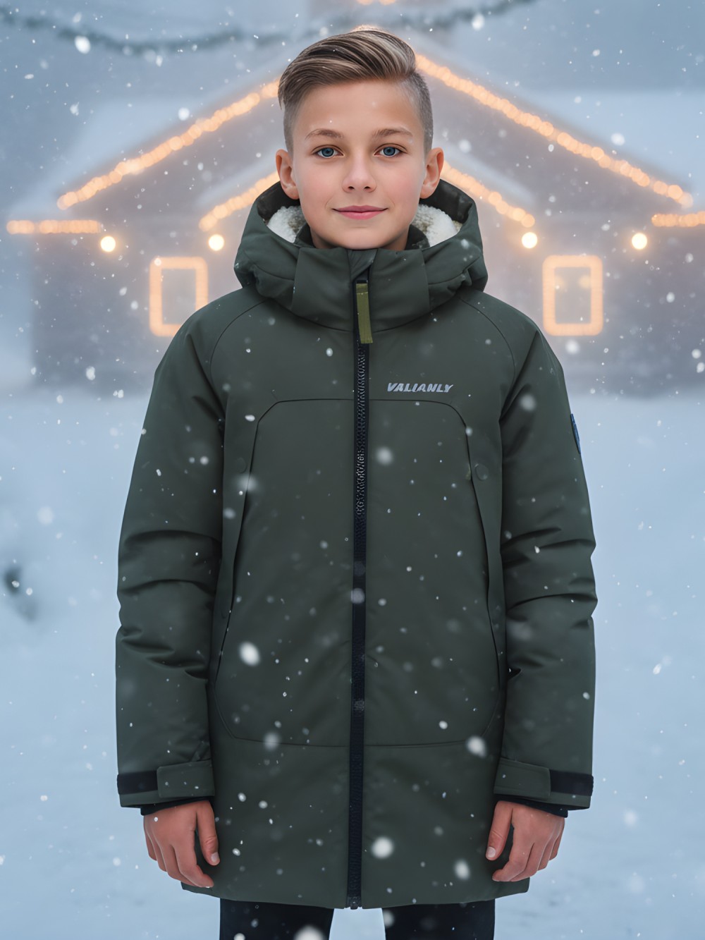 Парка зимняя подростковая для мальчика с капюшоном темно-зеленого цвета 9539TZ