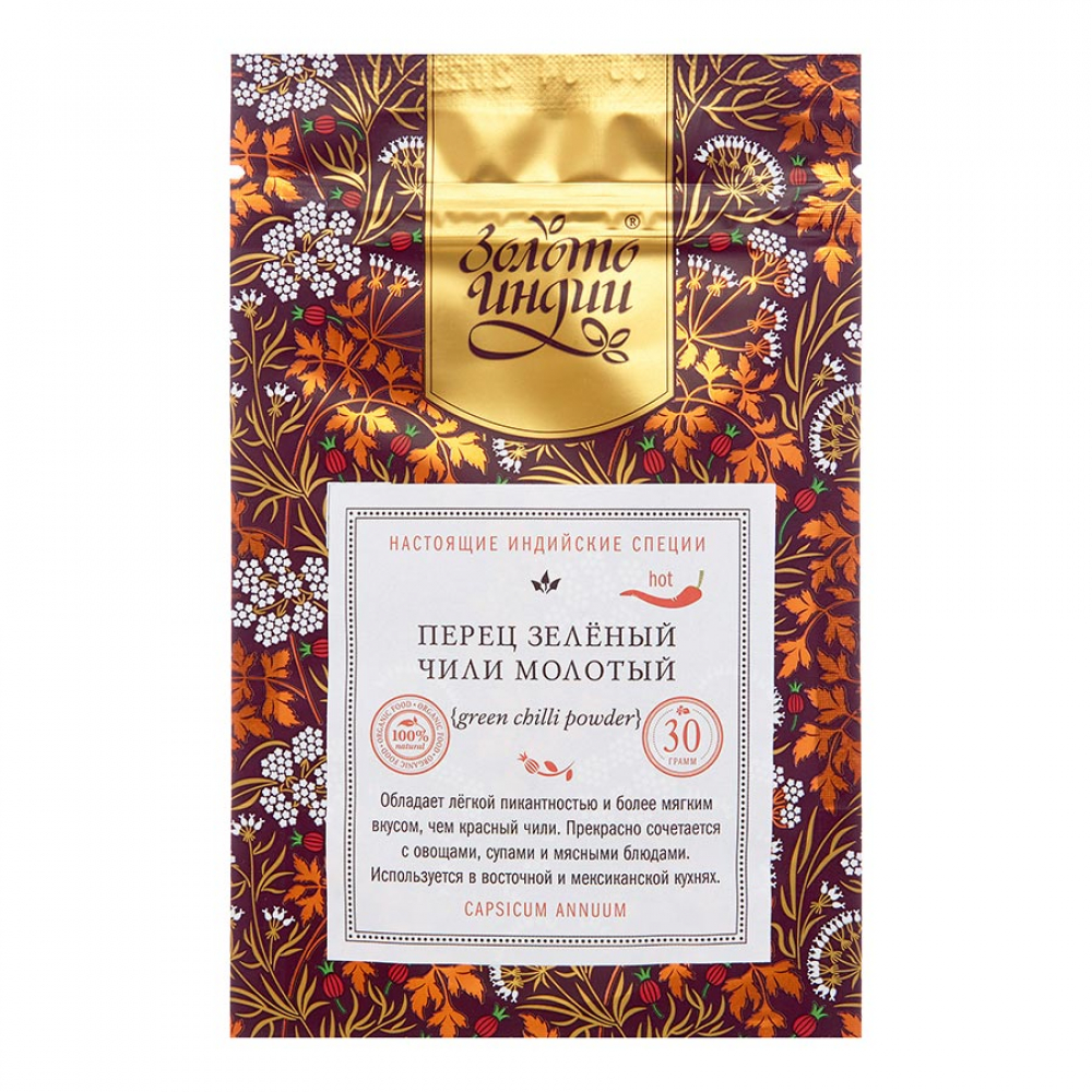 ЗОЛОТО ИНДИИ Green Chilli Powder Перец Чили Зеленый молотый 30г