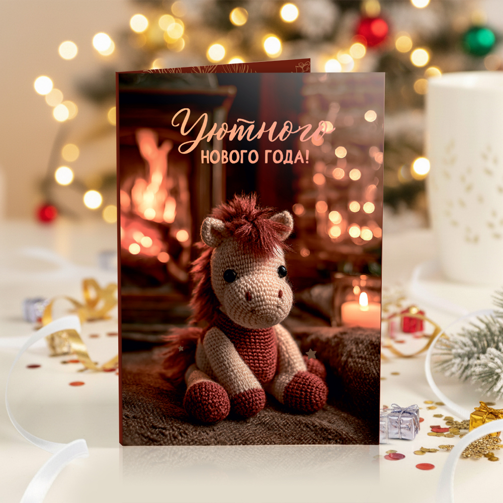 ★︎ Открытка 4 шоколадки "Уютного Нового года (вязаная лошадка)"