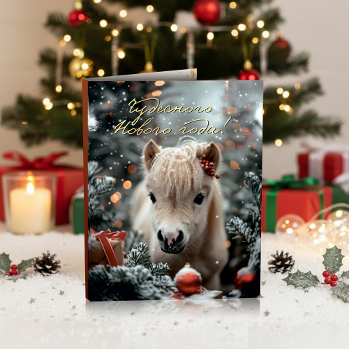 ★︎ Мини-открытка "Чудесного Нового года! (лошадка маленькая)