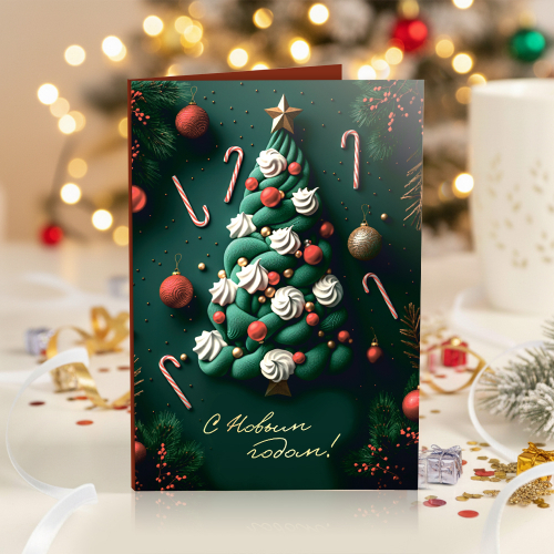 Открытка 4 шоколадки "С Новым годом! (ёлка объёмная)"