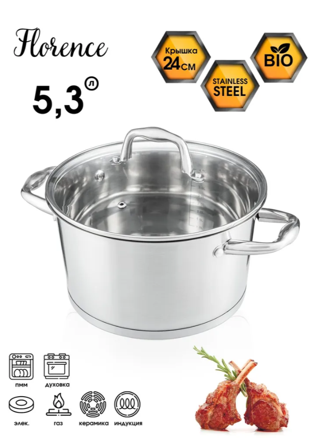 АКЦИЯ 1560р. 3900р.Кастрюля WR-1286 Premium 5,3 Florence