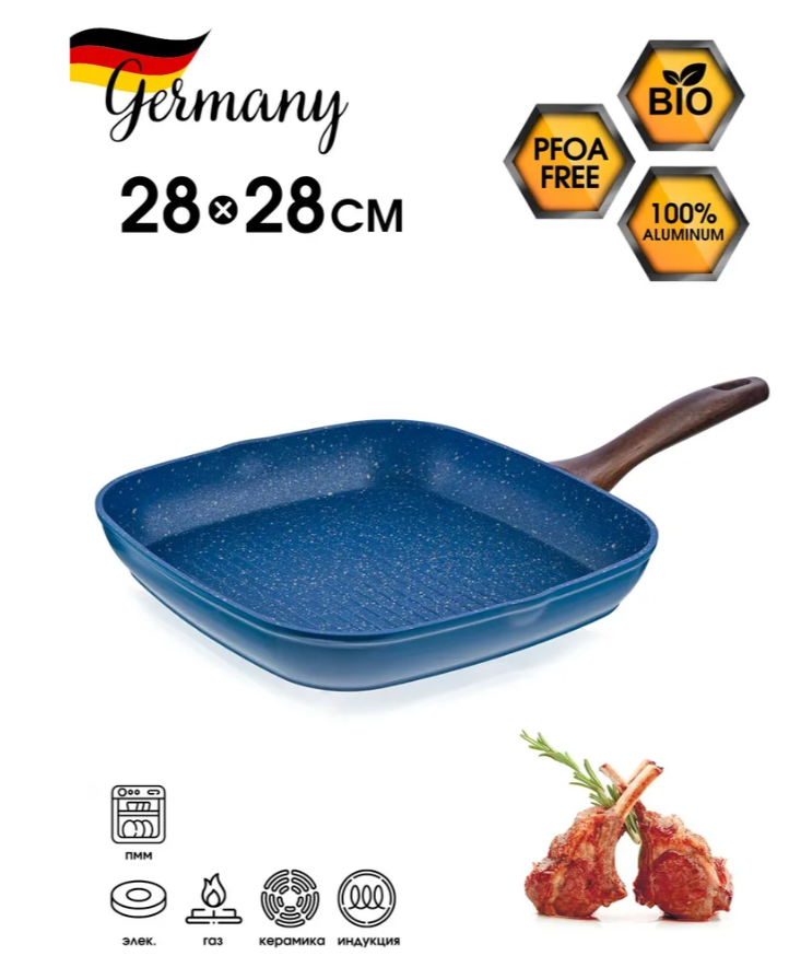 АКЦИЯ 885р. 2000р.Сковорода-гриль WR-9026 28см с мраморным покр. ЛАЗУРЬ