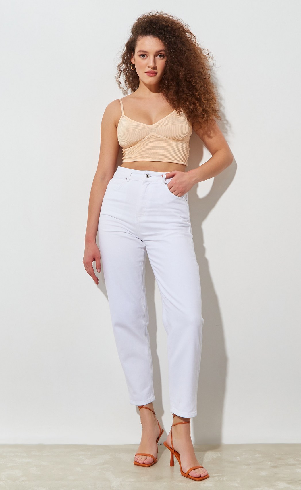 Джинсы женские прямые F312-0124 светло-бежевые