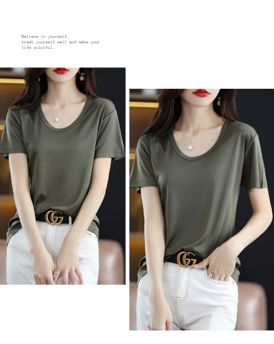 Футболка женская из ацетатного шелка FI-S-ZW-917-00, мох