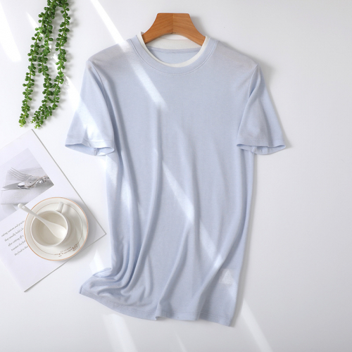 Футболка женская из тенселя FI-S-YQ8811-05, светло-синий