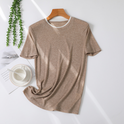 Футболка женская из тенселя FI-S-YQ8811-01, бежевый меланж