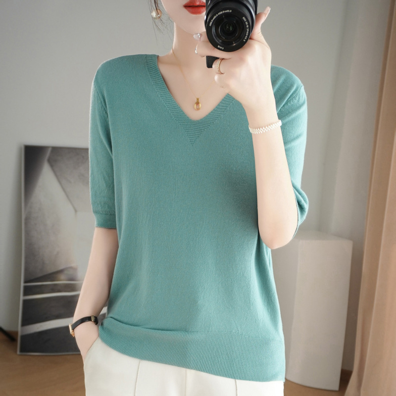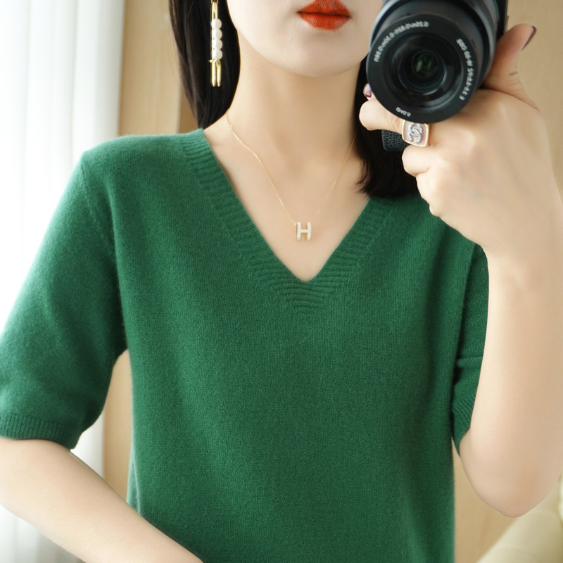Футболка из смесовой шерстяной пряжи FI-W-MX08845-01, оливковый меланж