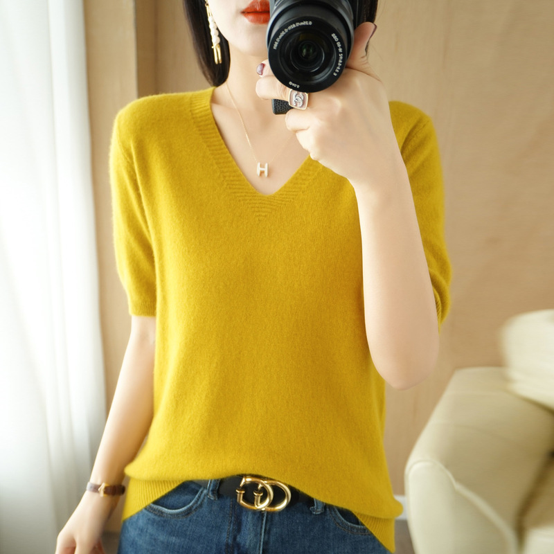 Футболка из смесовой шерстяной пряжи FI-W-MX08845-00, горчичный меланж