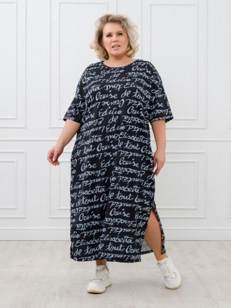 Туника женская удлиненная с карманами Слова 41-04 черный (кулирка)